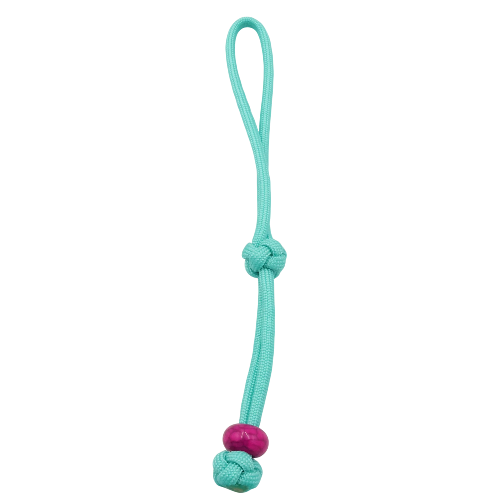 Dieser handgefertigte Kotbeutelhalter aus Paracord ist eine einfache und praktische Lösung für unterwegs. Der Beutel wird einfach am Knoten durch die Schlaufe gezogen und durch die Perle fixiert, ganz ohne Haken oder Metallteile. So hast du volle Hände frei und musst benutzte Beutel nicht mehr in der Hand tragen.